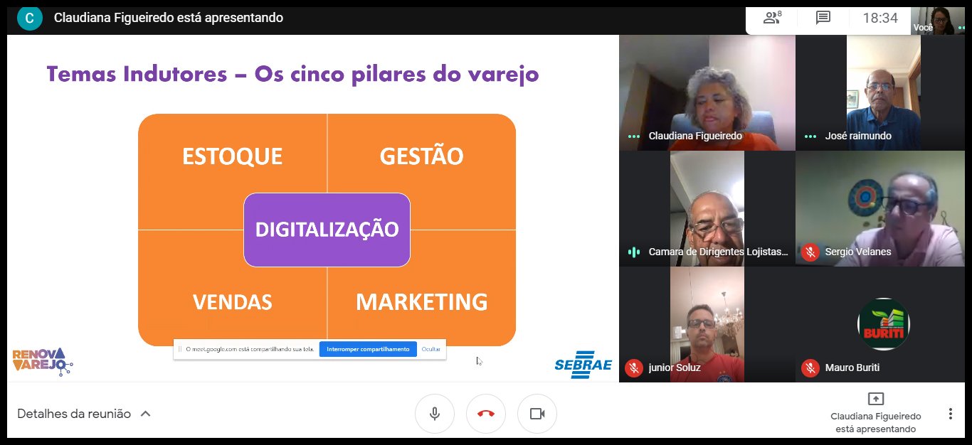 A gerência do Sebrae em Ilhéus, unidade responsável por atender a região Sul do estado, se reuniu com entidades representativas do varejo no município de Itabuna para uma apresentação do Movimento Renova Varejo. Dentre os participantes do encontro on-line, estavam o presidente da CDL Itabuna, Carlos Leahy, o presidente do Fórum Empresarial da Bahia, José Raimundo Araújo e, representando a Associação Comercial, estiveram presentes o presidente Sérgio Vellanes e diretores Mauro Luiz Ribeiro (Buriti) e Eduardo Carqueija Júnior (Sóluz).