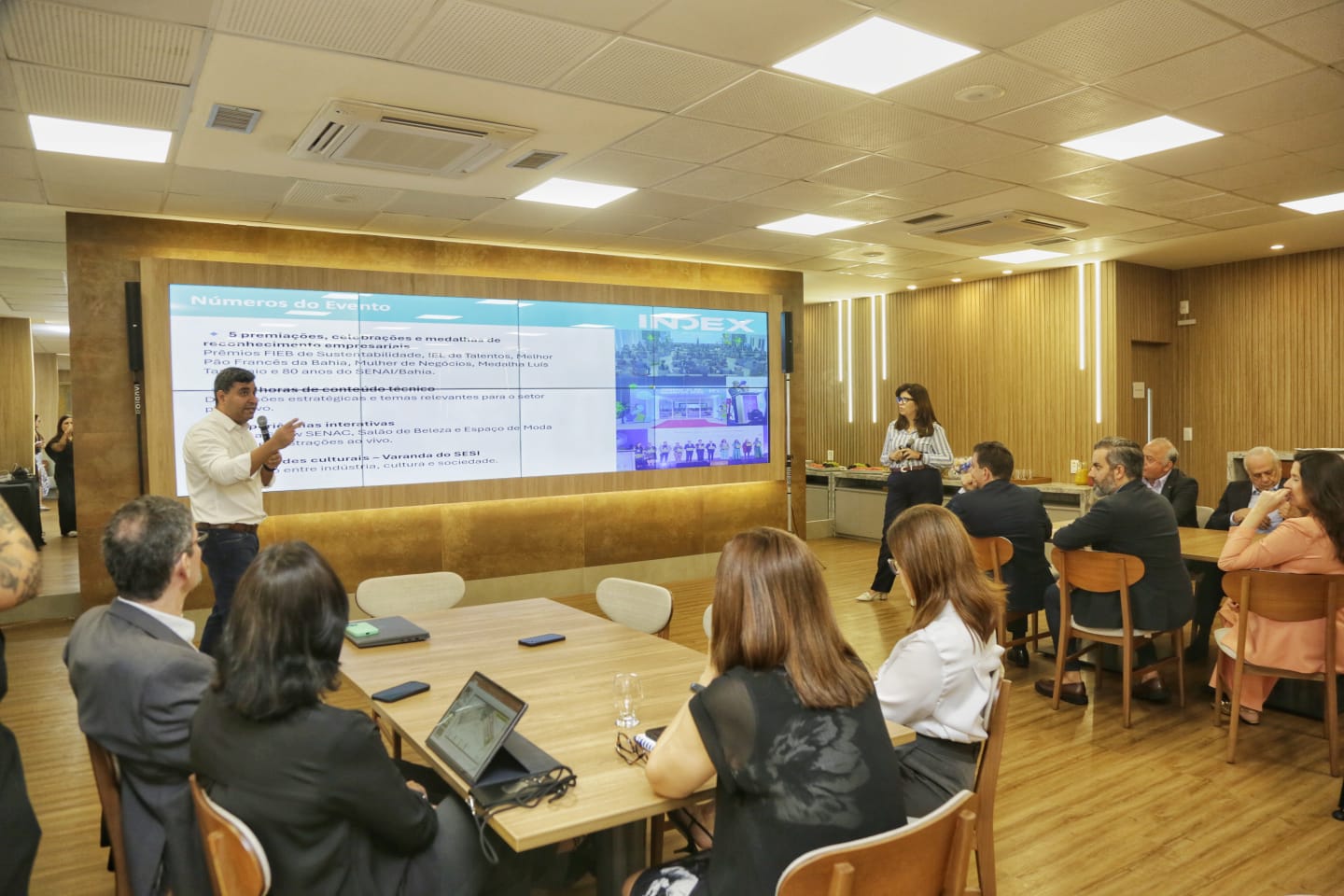 Detalhes do evento foram apresentados para a imprensa na manhã desta segunda-feira (18/08), na sede da Fieb. Com uma programação diversificada, a INDEX contará com rodadas de negócios, capacitações, e premiações, incluindo o Prêmio Sebrae Mulher de Negócios, o Prêmio Melhor Pão Francês da Bahia, ambos no dia 28/08, além do lançamento oficial do Prêmio Sebrae Prefeitura Empreendedora, marcado para o dia 27. A iniciativa tem como propósito compartilhar visão, inovação e propósito, fortalecendo o setor produtivo e aproximando a indústria dos mercados consumidores.