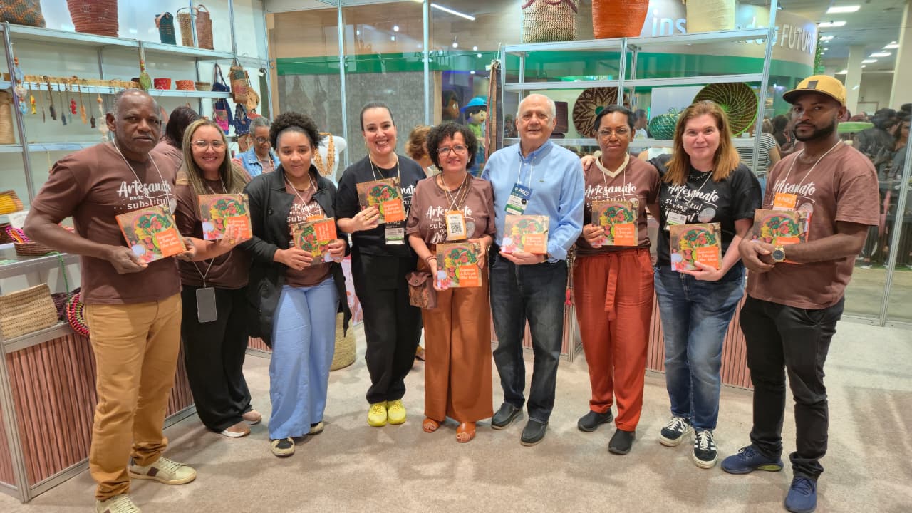 O livro tem a versão física, mas pode ser acessado também em sua versão online, através do site (https://issuu.com/sebraebahia/docs/cat_logo_de_artesanato_2025). Lá estão todas as publicações, de 2018 a 2025.