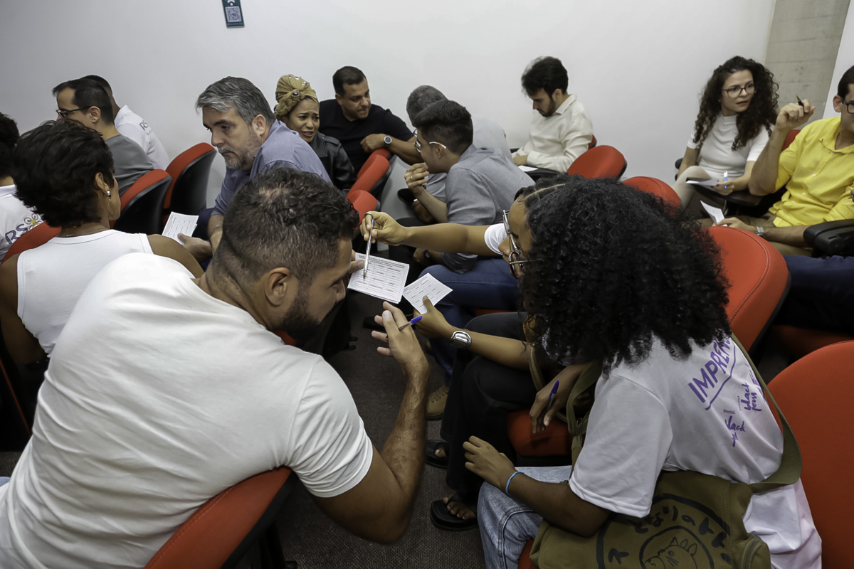 Após a abertura do evento, os participantes foram convidados a realizar uma dinâmica de integração para que dialogassem. Em seguida, participaram da dinâmica do Canva.