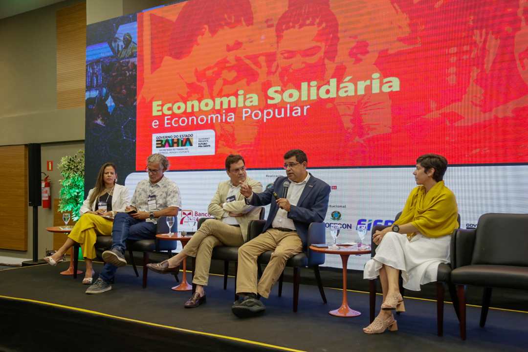 O secretário Davidson Magalhães falou sobre Políticas Públicas de Estímulo à Economia Solidária que têm sido implementadas na Bahia, dentre elas a qualificação profissional e a intermediação de mão de obra, criando um ambiente institucional favorável à atração de investimentos. “Essas políticas que estamos desenvolvendo ocorrem num quadro favorável, por conta de importantes iniciativas que estão ocorrendo no Brasil, como a nova política industrial, uma política de ciência e tecnologia, com aumento real do salário mínimo, que tem impacto muito grande na Bahia, em função de sua matriz econômica e pela estrutura do seu mercado de trabalho”, frisou.