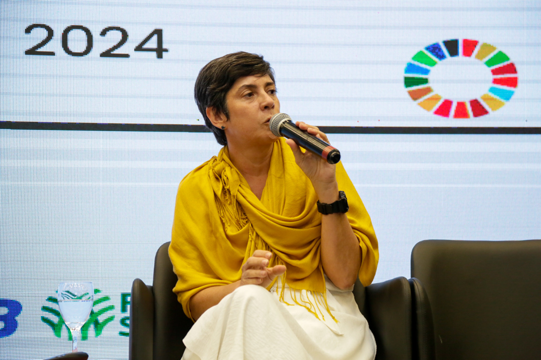 Márcia Suêde tratou da atuação do Sebrae Bahia nas práticas de ESG (Environmental, Social and Governance, na sigla em inglês – Ambiental, Social e Governança) e inclusão socioprodutiva dos pequenos negócios. De acordo com ela, o Banco Mundial elabora todo ano um panorama de riscos que aponta que nos próximos dois anos o maior risco seriam as fake news (notícias falsas). “Nos próximos 10 anos os quatro riscos mais importantes estão ligados ao meio ambiente. E a perda da biodiversidade impacta diretamente na economia circular e nos pequenos negócios”, adverte.