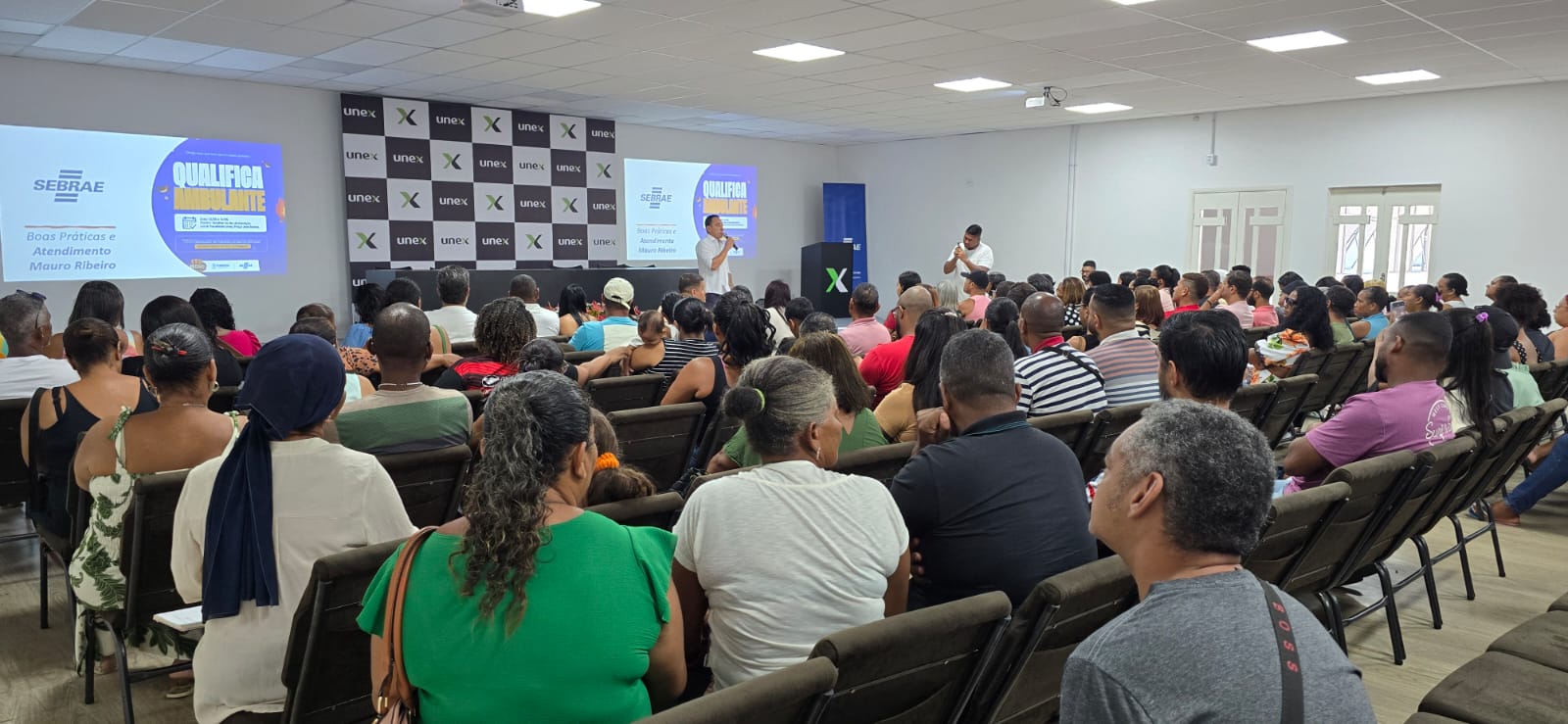 Nesta terça e quarta-feira, 13 e 14 de maio, foi realizada em Itabuna, no auditório da UNEX, a capacitação para os ambulantes que desejam atuar na comercialização de alimentos e bebidas durante o Ita Pedro 2025 – O Maior São Pedro do Brasil. A iniciativa é uma parceria entre a Prefeitura de Itabuna, por meio da Secretaria de Segurança e Ordem Pública (SESOP), Indústria, Comércio, Emprego e Renda de Itabuna (SICER) e o Sebrae, com apoio de diversos órgãos. A iniciativa reuniu 726 inscritos em quatro turmas.